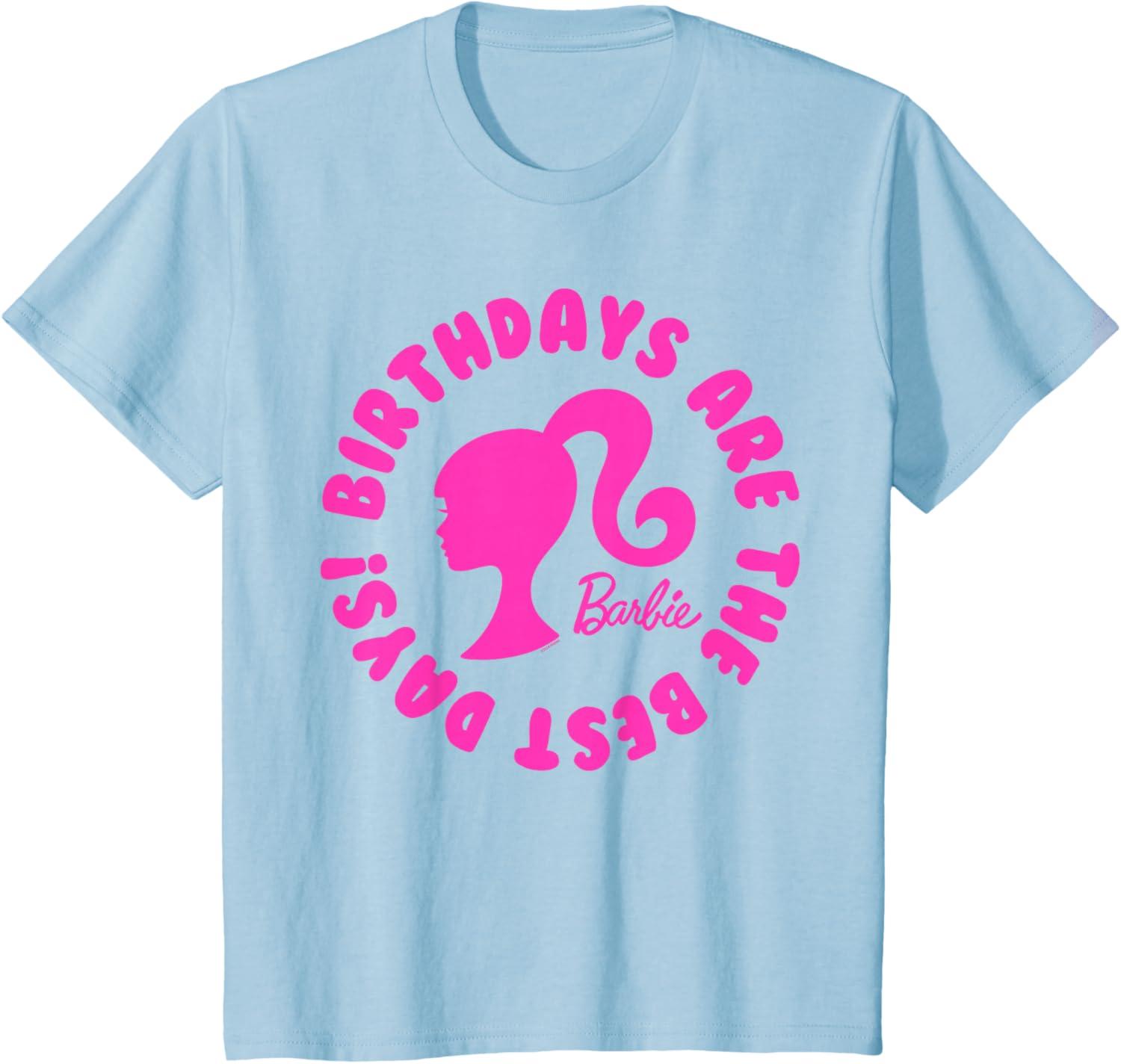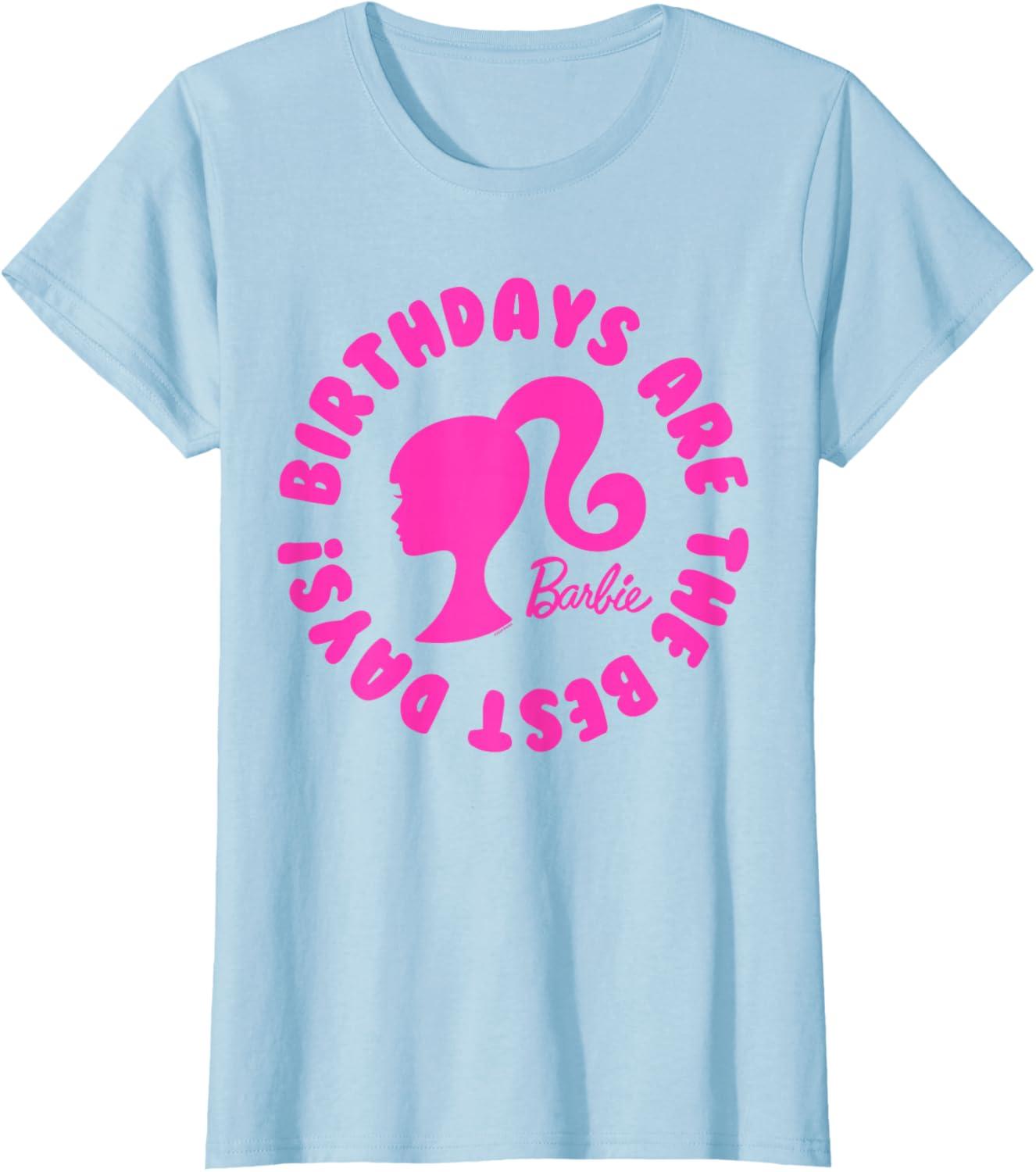Birthday celebration Show your love for Barbie in graphic tees and other product offerings! This officially licensed Barbie product is available in a wide variety of sizes and colors. This top is perfect for a Barbie birthday outfit because birthdays are the best days.
