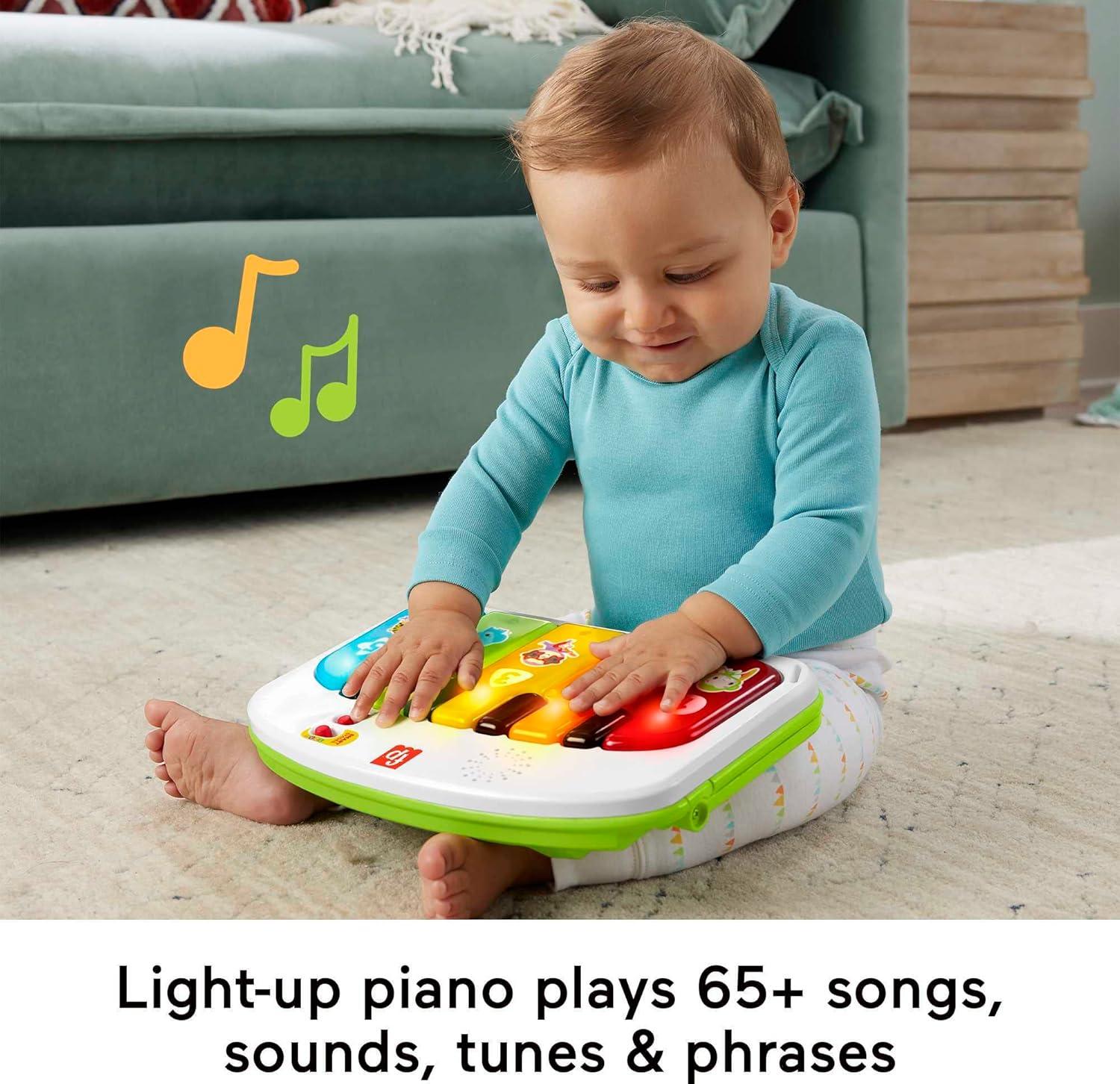 Take-along, light-up piano plays 65+ songs, sounds and educational phrases that teach colors, shapes, numbers and counting, plus real music notes in piano mode