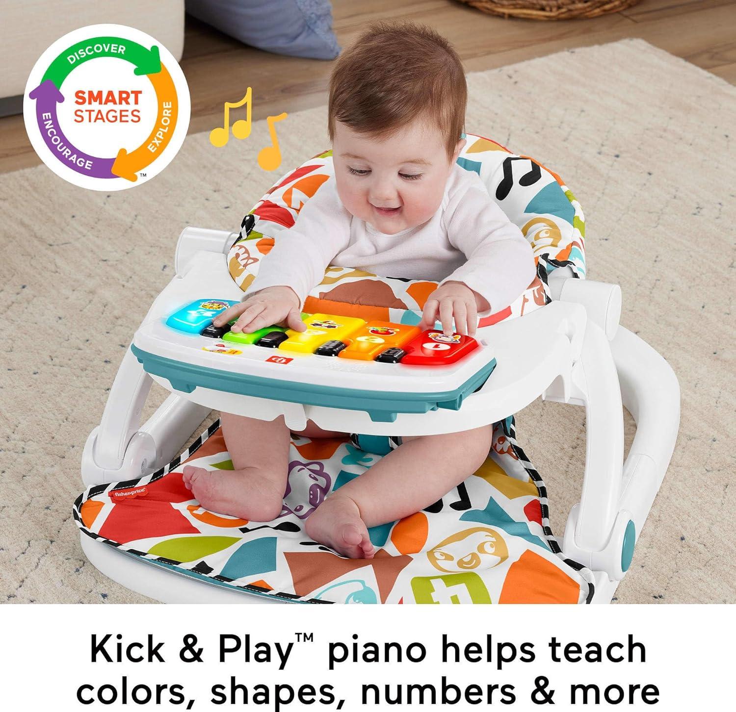 Fisher-Price Baby Portable Chair Deluxe Kick & Play Sit-Me-Up Floor Seat with Piano Learning Toy & Snack Tray for Infants to Toddlers(Multicolor)