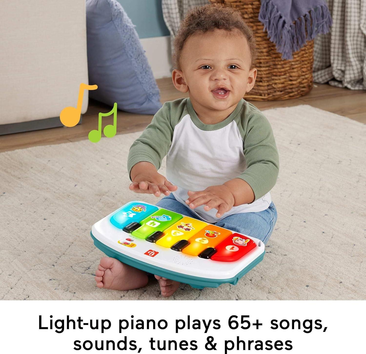 Take-along, light-up piano plays 65+ songs, sounds and educational phrases that teach colors, shapes, numbers and counting, plus real music notes in piano mode