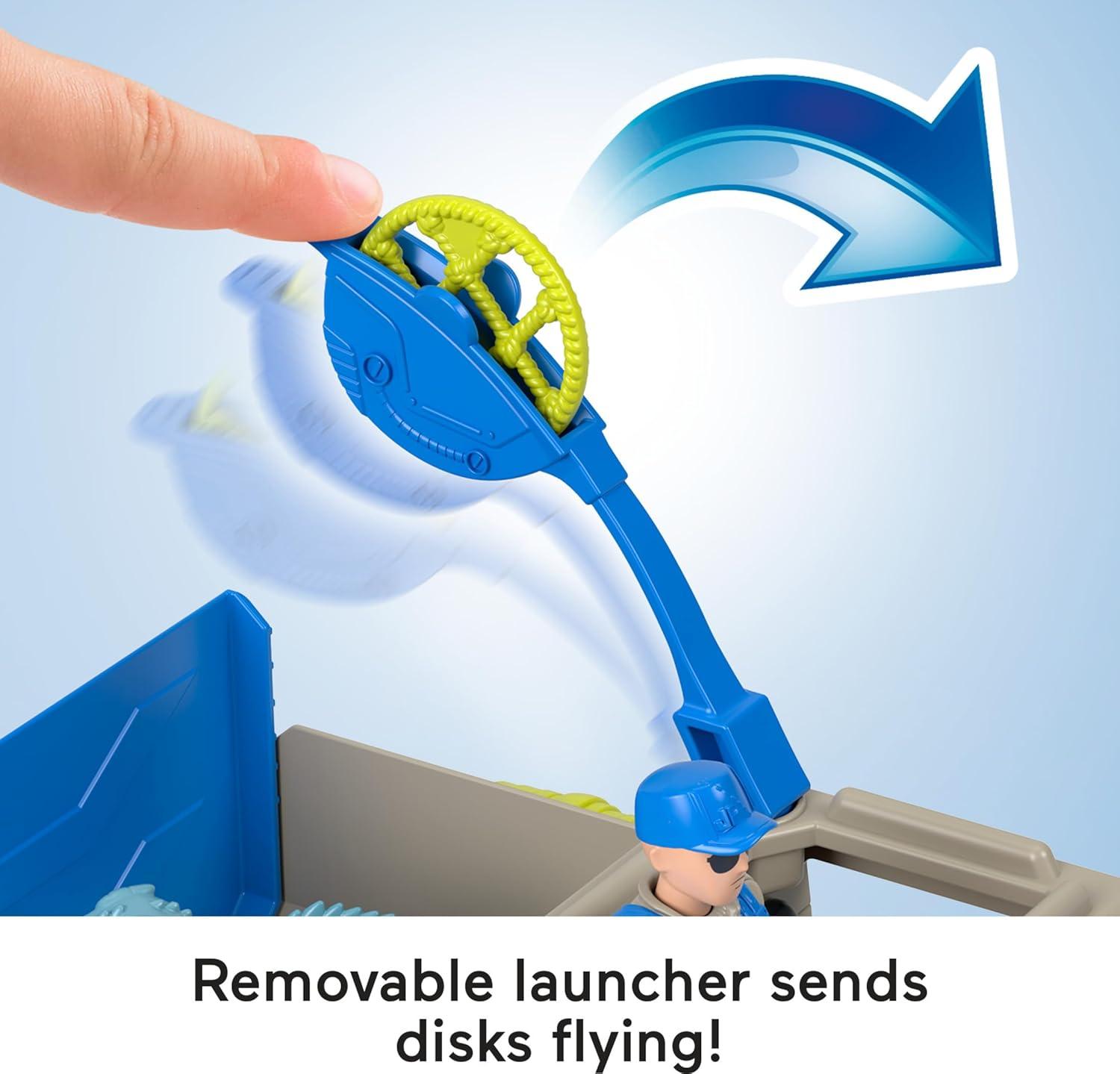 ​Truck also has fold-down ramp for loading & unloading, plus a movable launcher kids can use to send disks flying