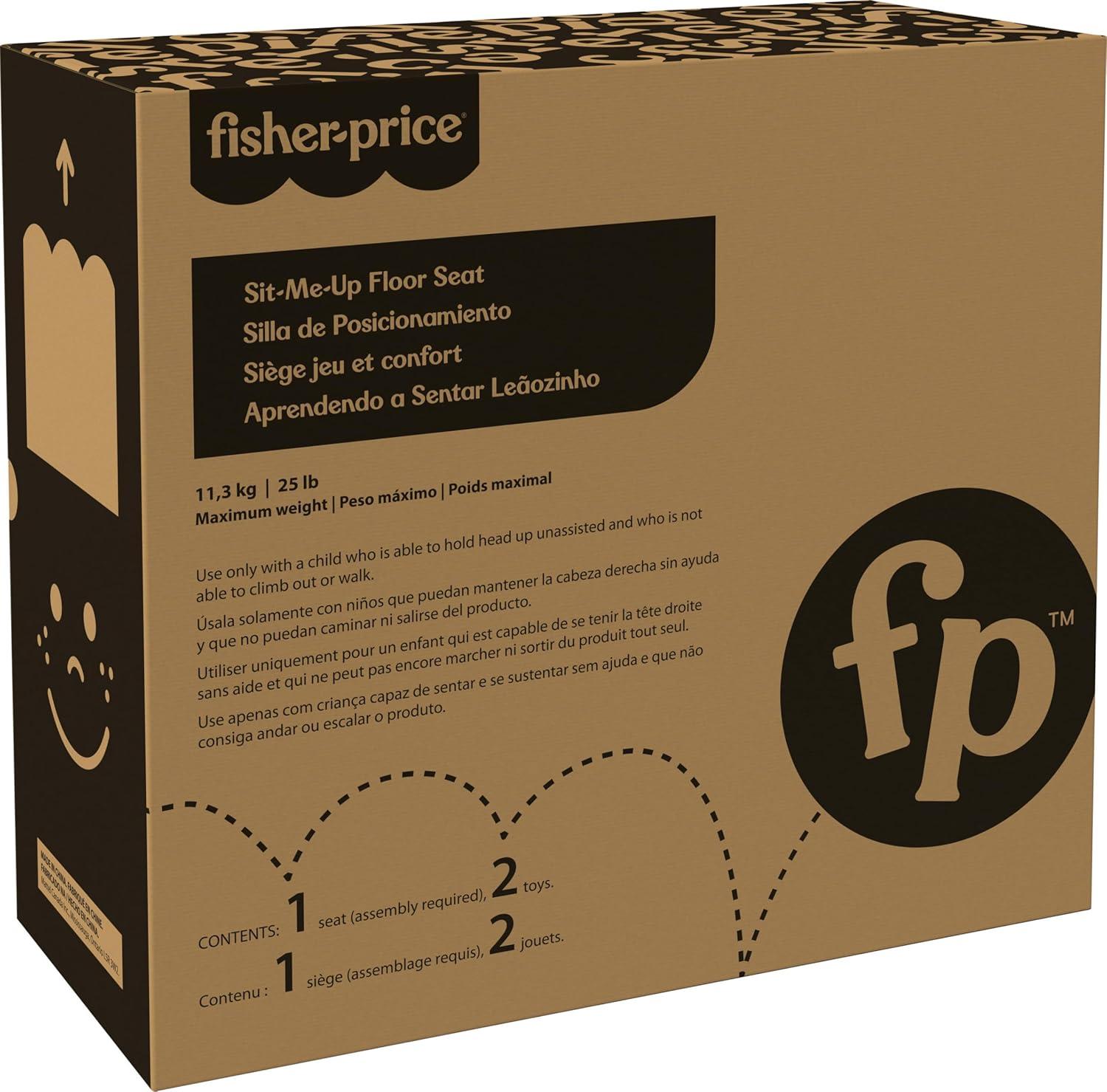 The Fisher-Price Sit-Me-Up Floor Seat helps support newborn babies so they can sit up, play and explore the world around them. This portable baby chair features a sturdy base with a soft, cow-themed fabric seat pad and wide leg openings for added comfort. The seat comes with 2 linkable toys for little ones to clack and teethe. And best of all, the travel chair folds to easily move from room-to-room or wherever you and baby go! Max. weight 25 lb (11,3 kg). Use only with a child who is able to hold head up unassisted and who is not able to climb out or walk.