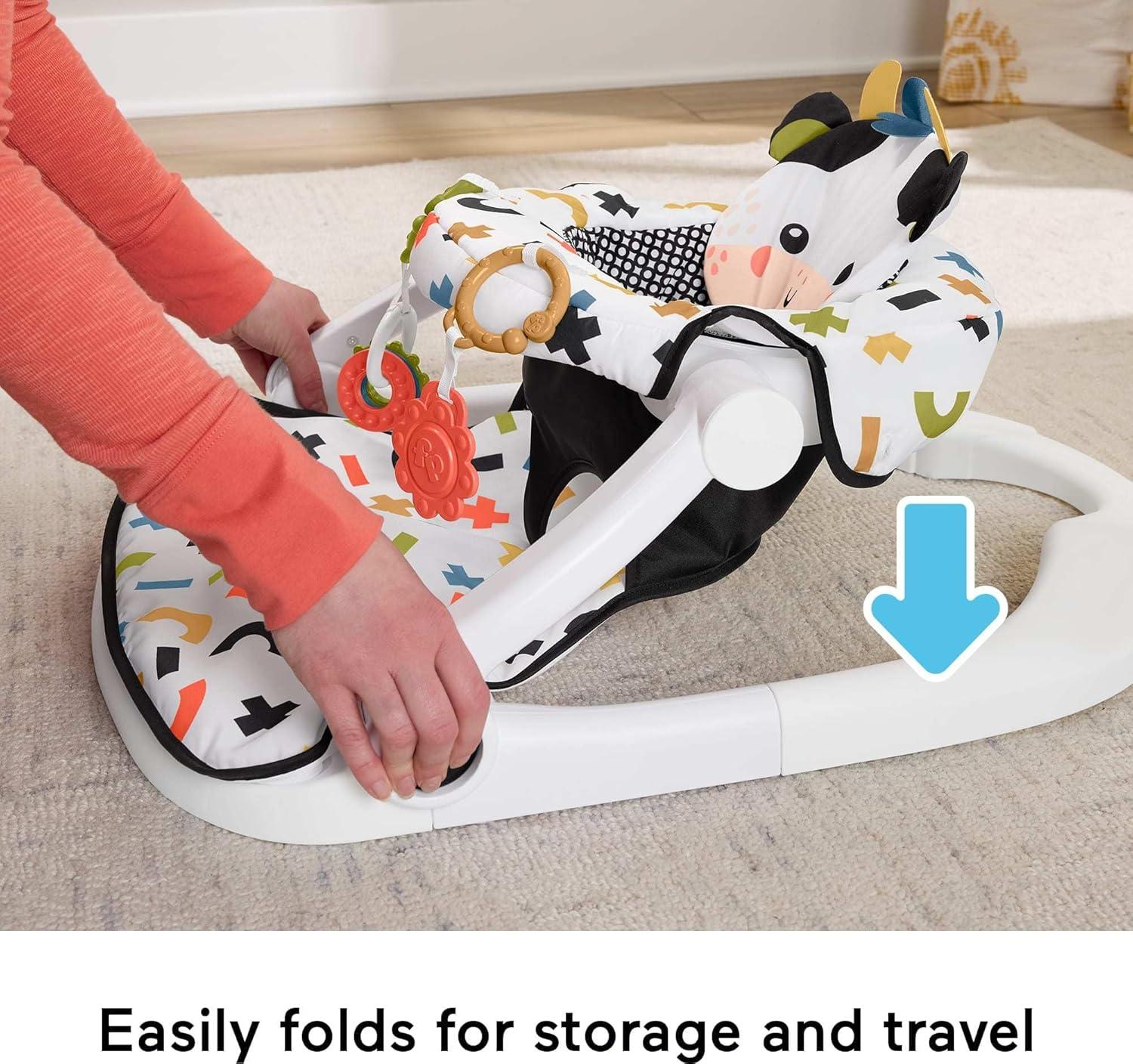 Fisher-Price Portable Baby Chair, Cute Cow Sit-Me-Up Floor Seat with BPA-Free Teether & Clacker Newborn Developmental Toys (Amazon Exclusive)(Cow)