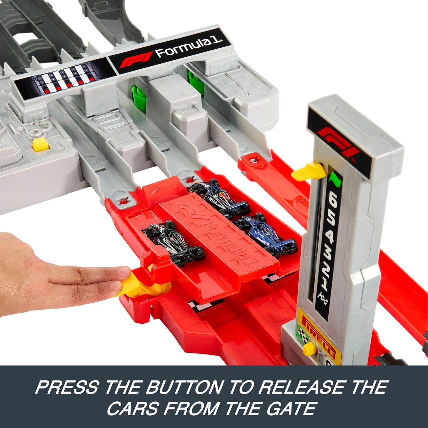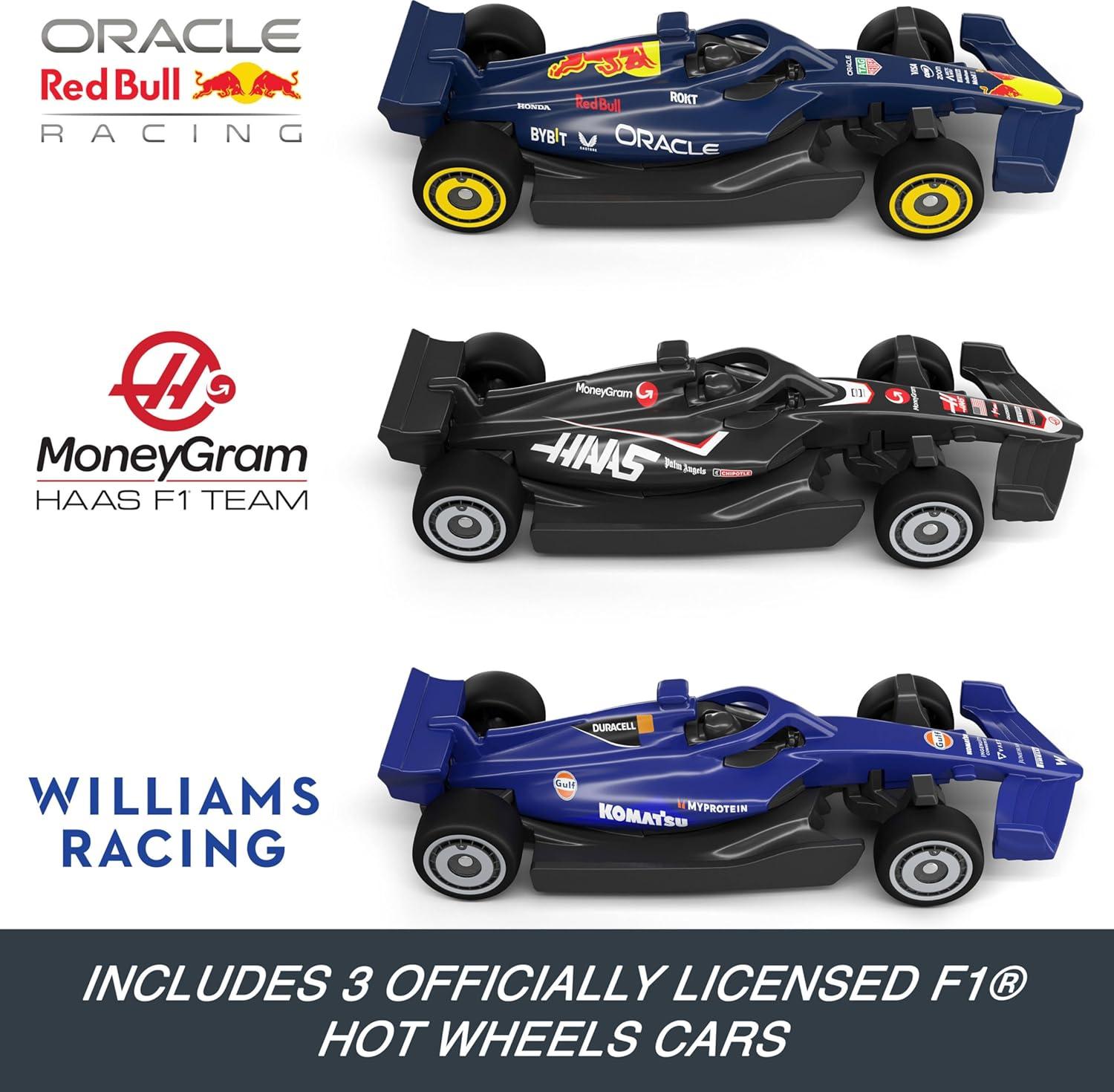 Hot Wheels Toy Car Track Set, Formula 1 Grand Prix Circuit Track Set with 3 1:64 Scale Die-Cast Toy Cars, Two Modes of Racing with a Motorized Booster(Track)