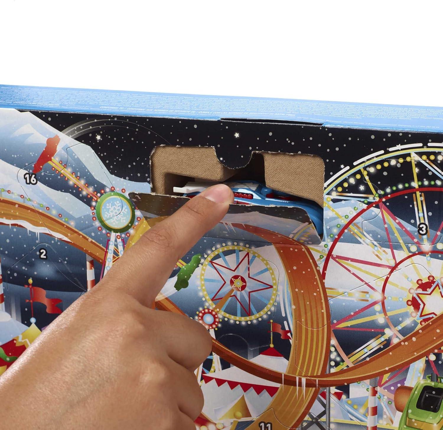 Hot Wheels Toy Cars, 2022 Advent Calendar with 8 1:64 Scale Vehicles, 16 Holiday-Themed Accessories & Playmat(Version 2)