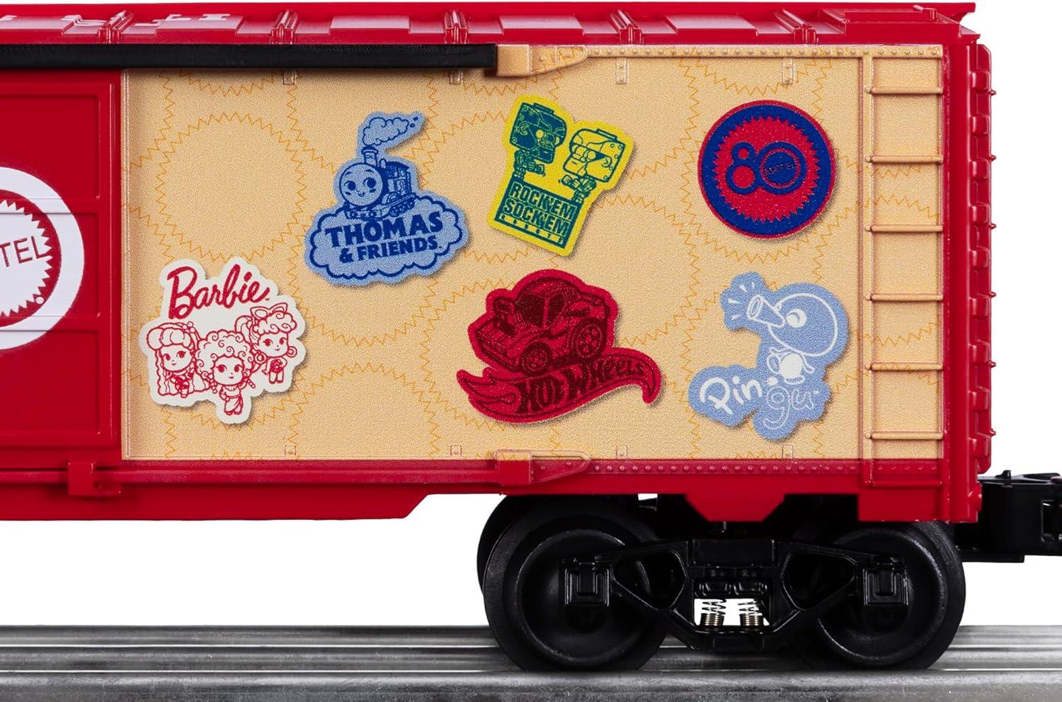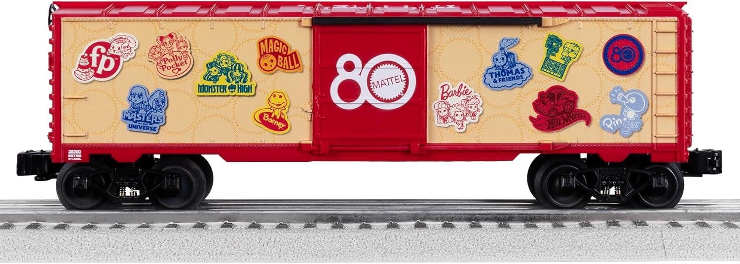 PRODUCT: Lionel Mattel 80th Anniversary MUSA O Gauge Model Train Boxcar highlights multiple franchise brands while also fitting tribute to Mattel’s eight decades of play!