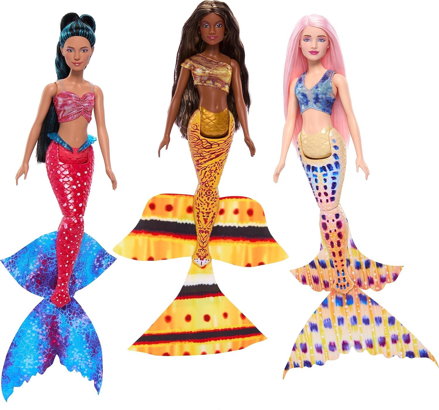 Each fashion doll is posable and appears in an authentic mermaid look with unique print and tail for storytelling play.