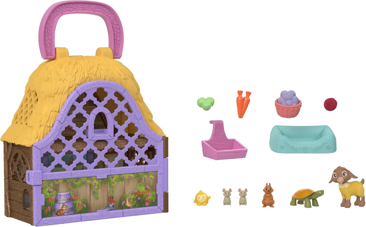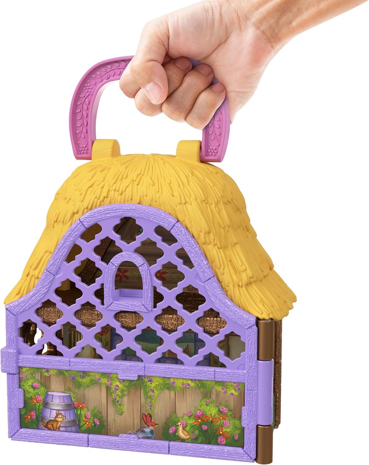 Inspired by a movie-moment location, the portable playset opens to reveal a marketplace where Dahlia doll can shop for the palace’s groceries!