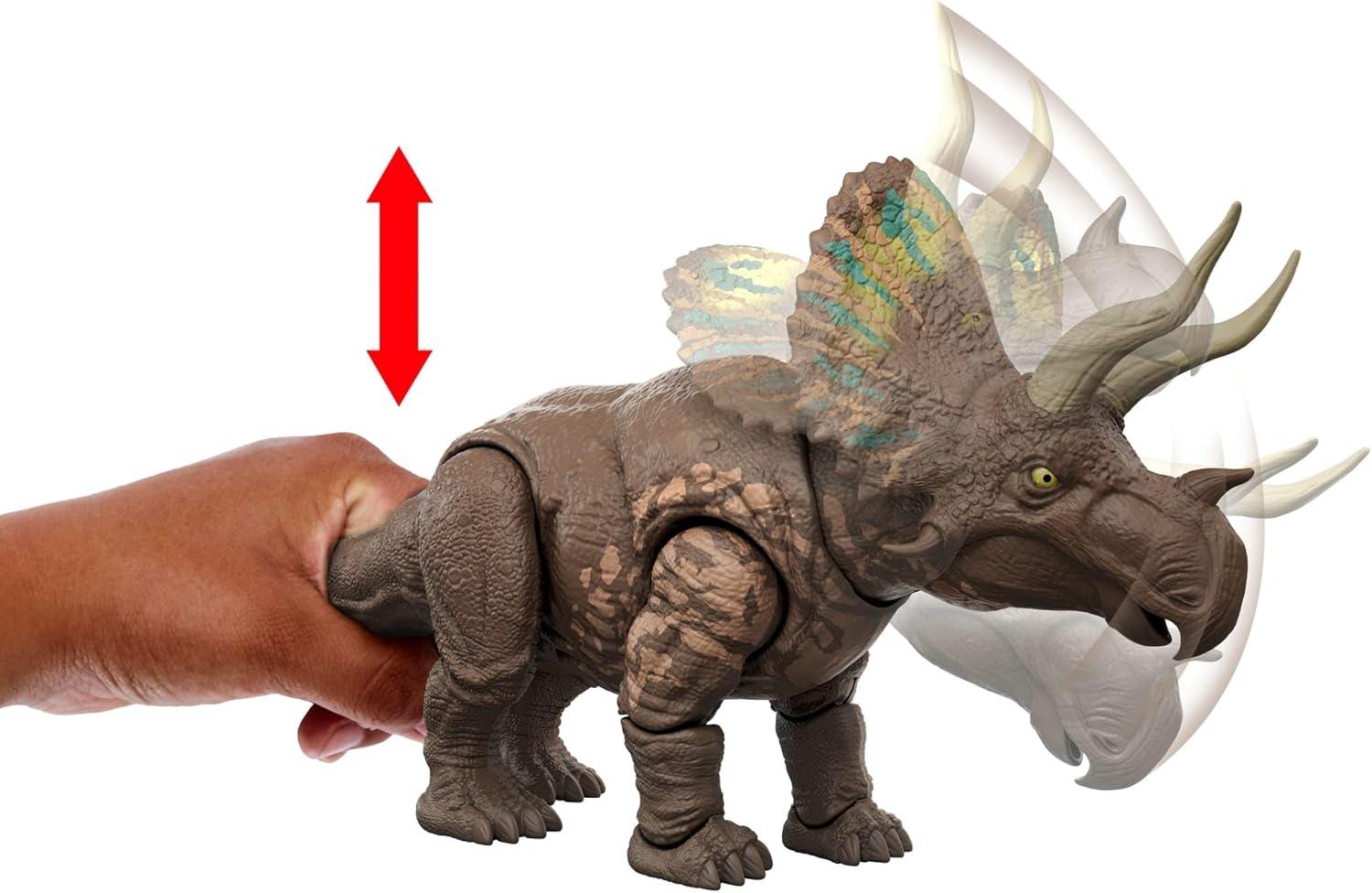 Mattel Jurassic World Chaos Theory Gigantic Trackers Suchomimus Dinosaur Action Figure, Large Species Toy with Thrash Attack & Chomp, Digital Play(Eotriceratops)