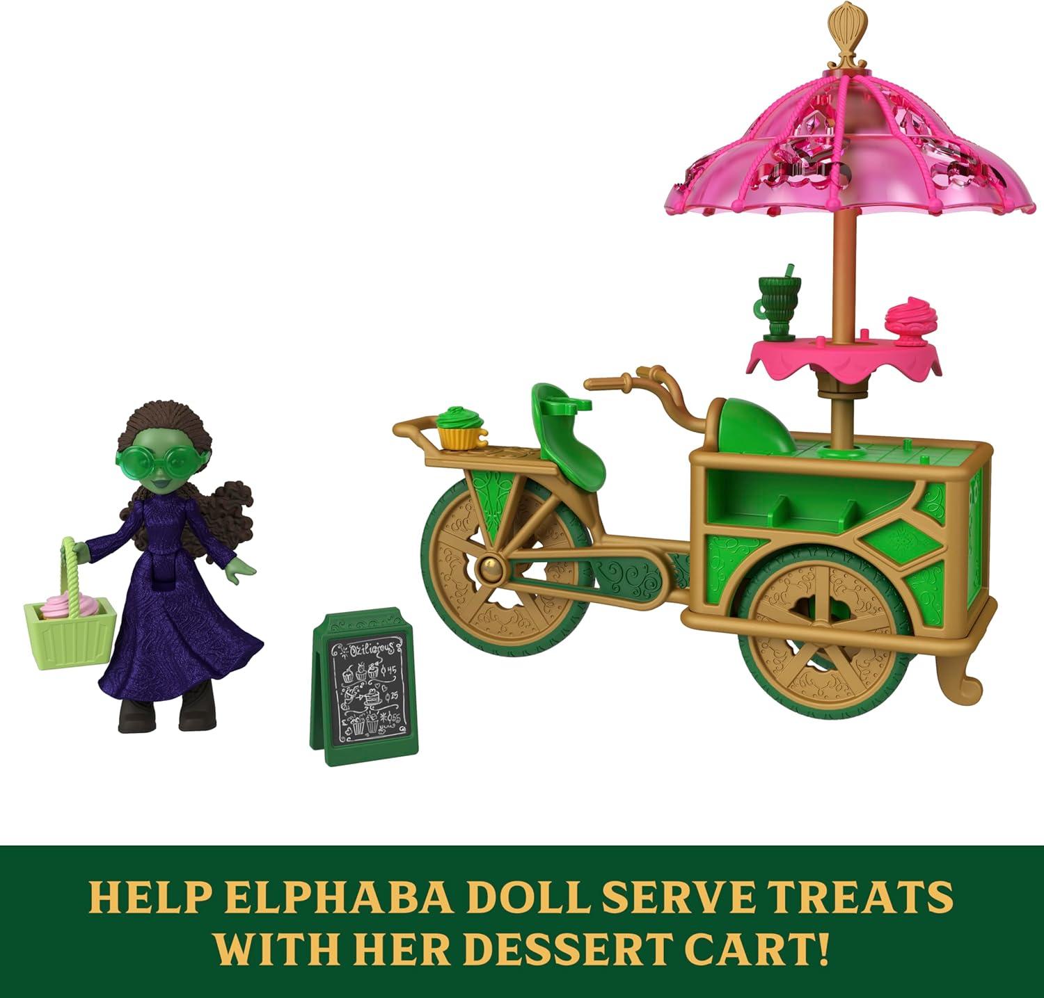 Mattel Universal Pictures’ Wicked Emerald City Dessert Cart Toy with Cart & Elphaba Small Doll & 7 Accessories, Inspired by The Movie