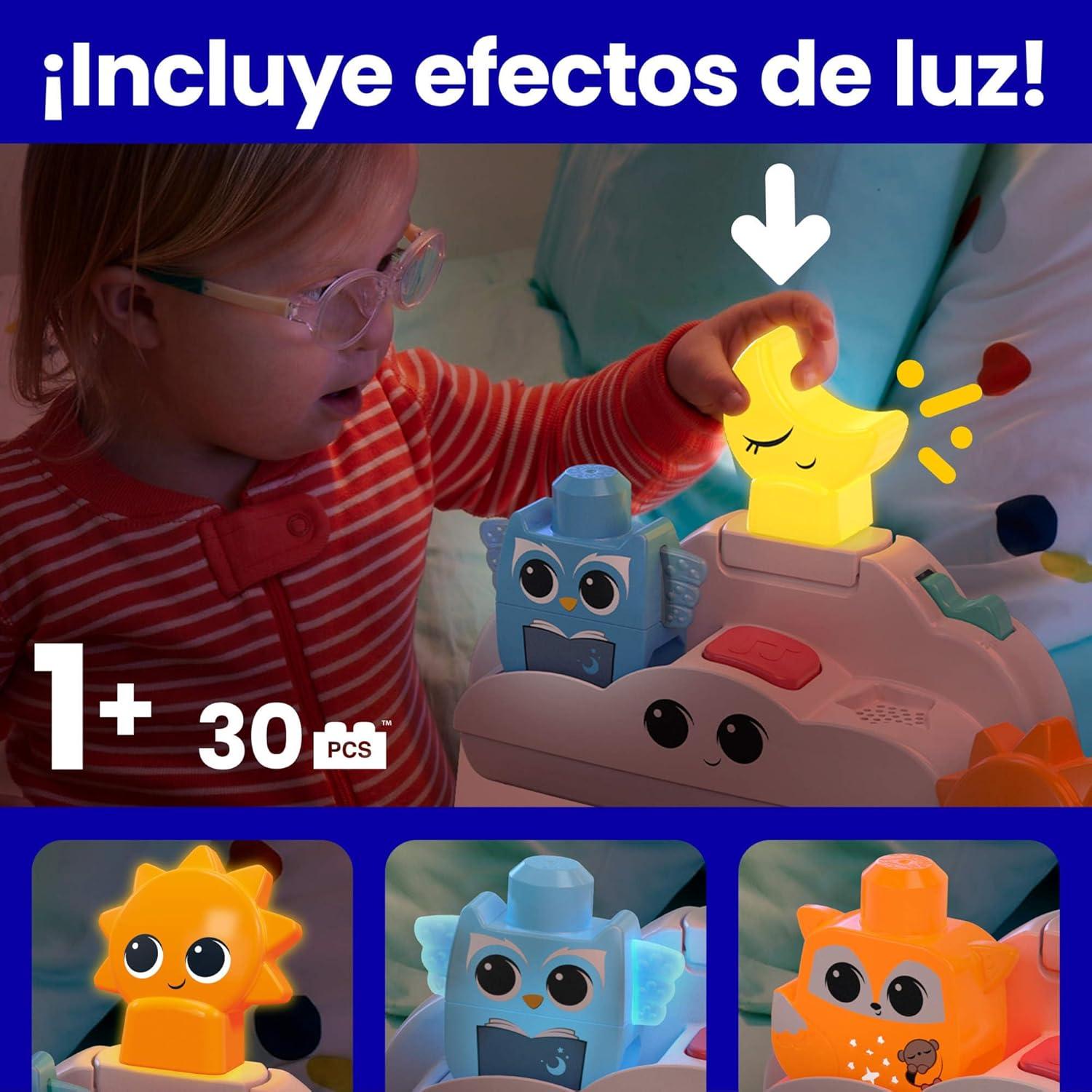 MEGA BLOKS Fisher-Price Toddler Building Blocks Toy, Rise & Snooze Night Light with 30 Pieces, Sound and Light Effects, Star Projector, Ages 1+ Years