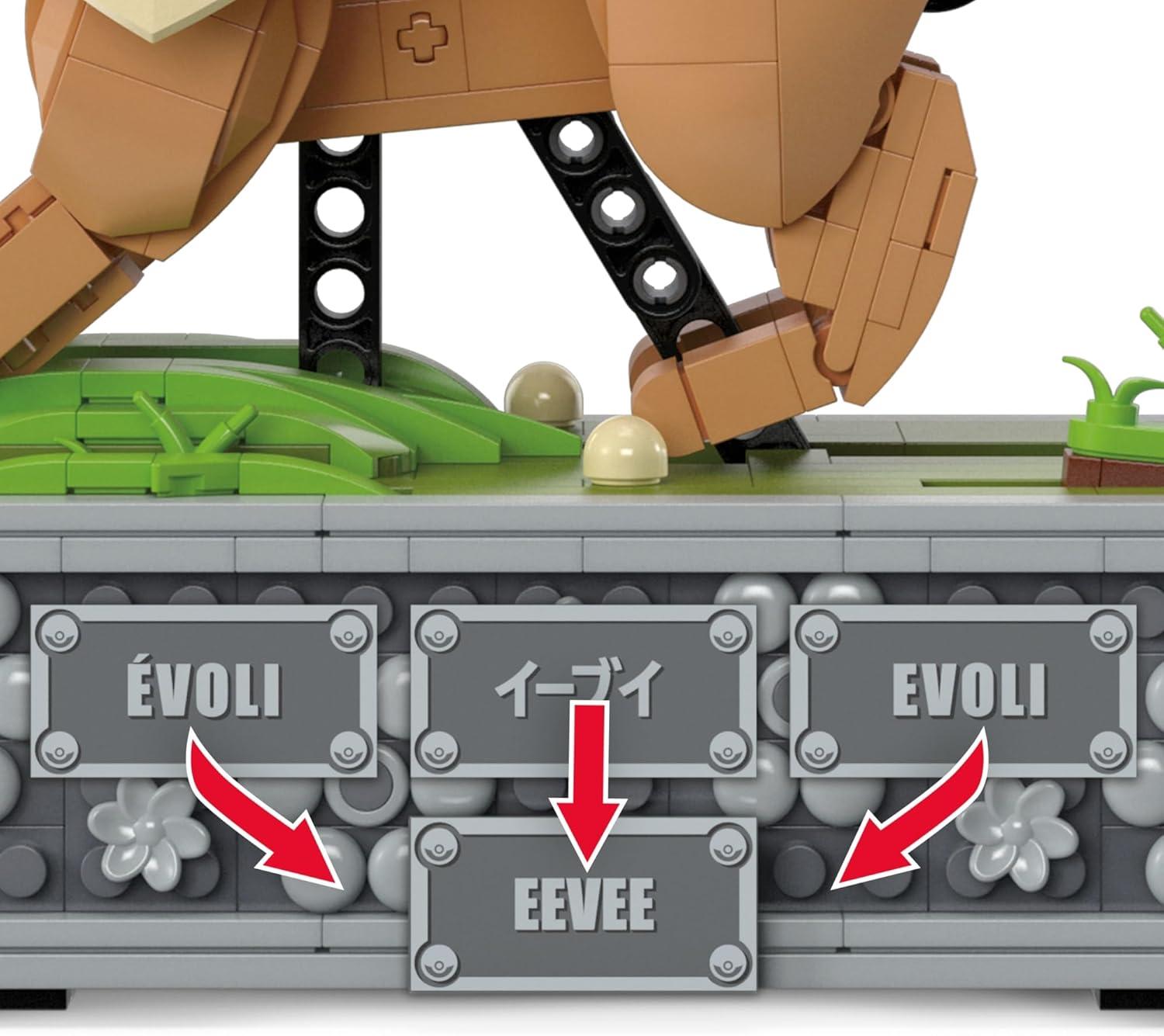 Evolve your building with the Motion Eevee set from MEGA. Build the model and turn the crank to watch Eevee's running motion, including swinging tail and head. The detailed base includes interchangeable name plates in different languages for varied display options. This showstopping set is sure to be a highlight in any collection.