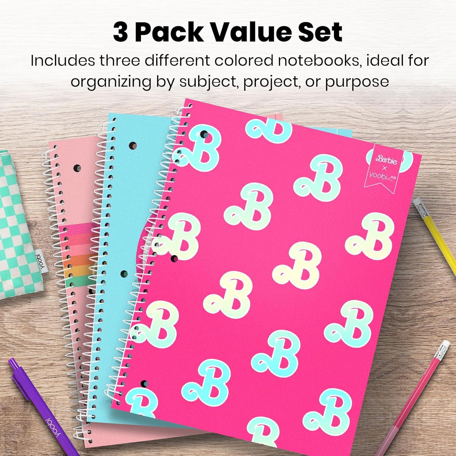 Yoobi Barbie X College Ruled Composition Notebook Set – 3-Pack of Kids 1 Subject Notebooks, Allover Print Designs – 100 Sheets Each, For School, Office & Home – 9.75” x 7.5”(Barbie – Spiral)